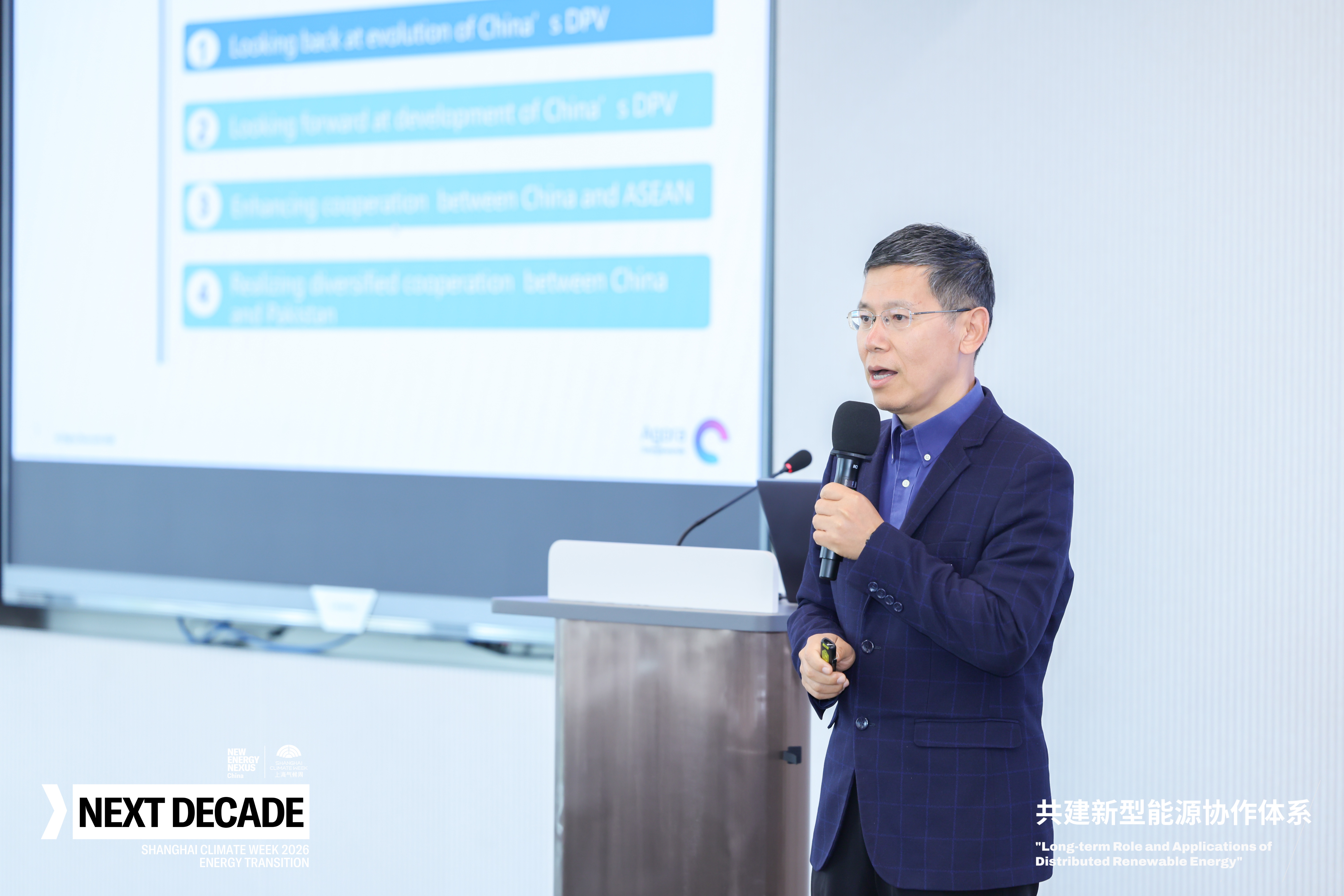 4月23 日,由 New Energy Nexus 中国、上海气候周组委会等联合主办的2026上海气候周 “下一个十年:共建新型能源协作体系——分布式可再生能源的长远定位与未来场景 ” 主题论坛在上海召开。博众智合能源转型电力项目主任尹明博士应邀发表主旨演讲,全面总结中国分布式光伏发展实践,展望2026—2030 行业趋势,并提出中国 — 东盟、中国 — 巴基斯坦清洁能源务实合作框架,为区域能源转型与协同发展提供专业方案。