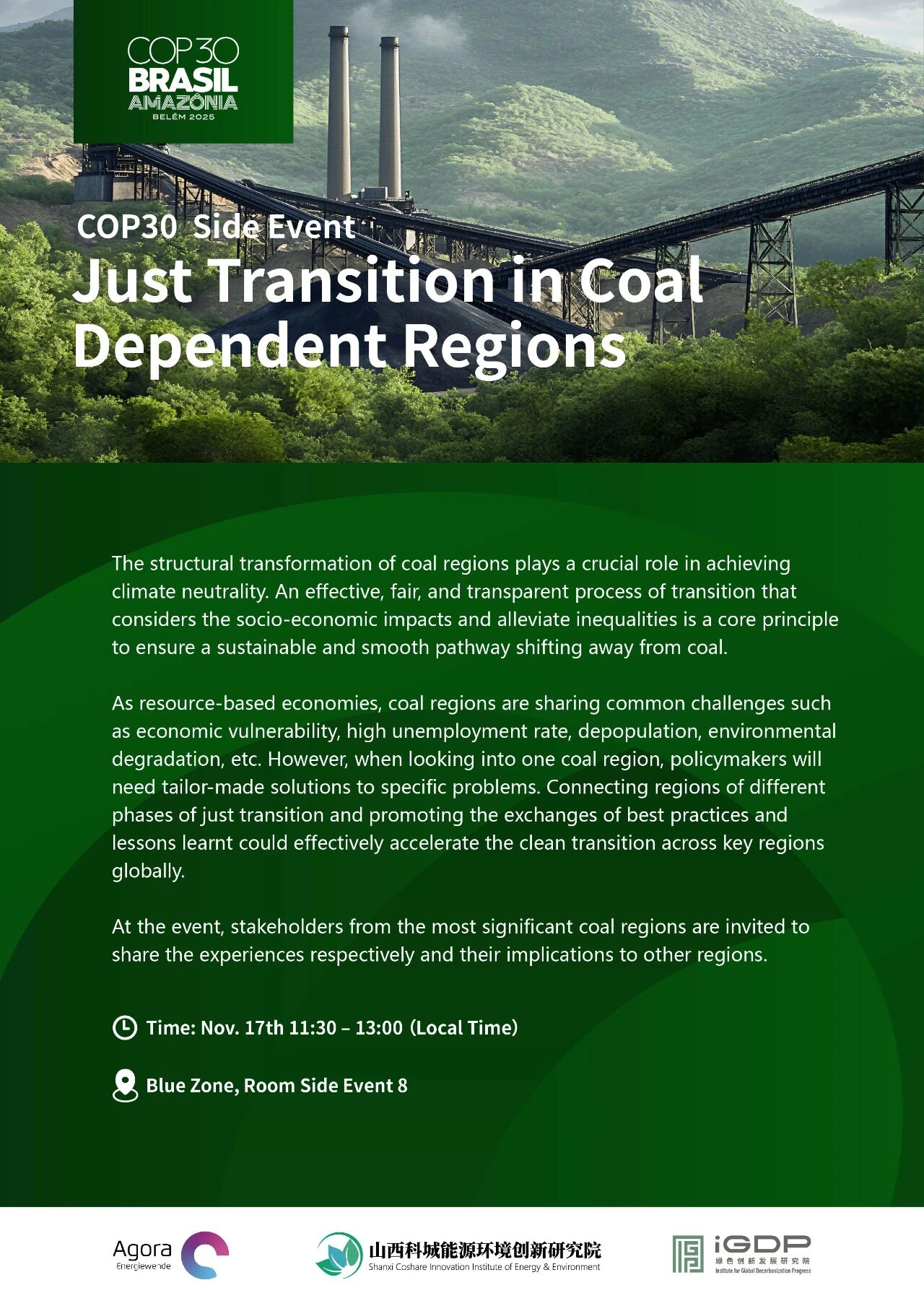 COP30边会预告 | 煤炭依赖地区的公正转型