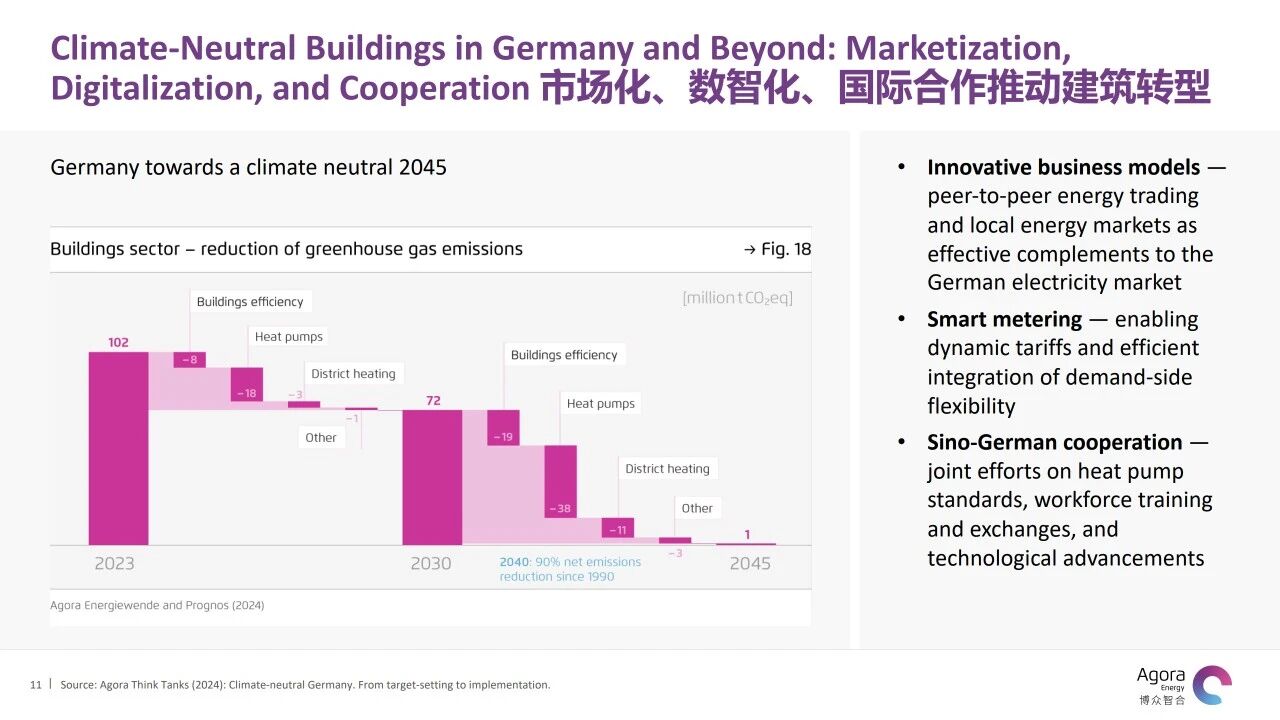 博众智合能源转型总裁涂建军指出,建筑和能源领域的转型既受政策推动,也蕴含巨大市场红利:欧洲严格法规提供经验参考,而中国丰富的产能则为落地实施提供保障;展望未来,如何找到政治可行、互利共赢的国际合作新模式是关键之所在。转型路径涵盖热泵电气化、建筑节能改造、材料升级及智能化应用,重点聚焦城市既有建筑更新、区域供热网络和工业园区等领域。未来中欧绿色建筑合作可从三方面推进:标准互认与政策协同、技术创新与产业升级,以及欧洲法规与中国交付模式的深度融合,从而加速绿色建筑和分布式能源的实践落地。