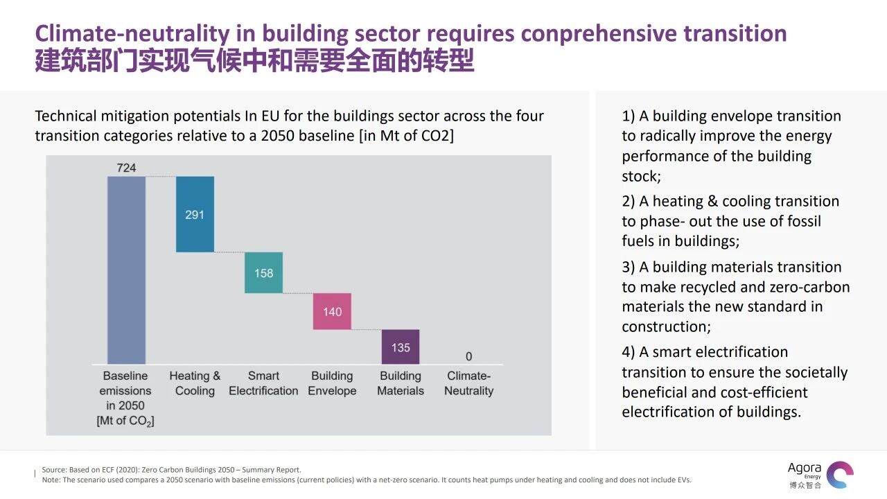 此外,建筑能源转型发展需要重视可再生能源在时间和空间上的匹配问题、南北方差异化发展问题。技术创新、市场机制完善和数智化赋能将共同推动建筑领域的低碳转型。
