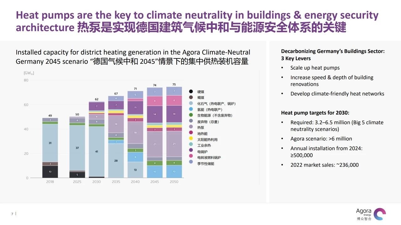 德国联邦贸易与投资署(GTAI)上海代表处徐昕云介绍,德国住宅需求持续增长,存量建筑翻新压力巨大,三分之二仍依赖化石燃料供暖。为实现2045年气候中和目标,德国推出5000亿欧元基础设施与气候中立专项基金,推动建筑节能改造和可再生能源发展。预计到2037年,德国建筑光伏装机将从100GW提升至345GW,小型储能增至59.5GW,热泵保有量将达到870万台。